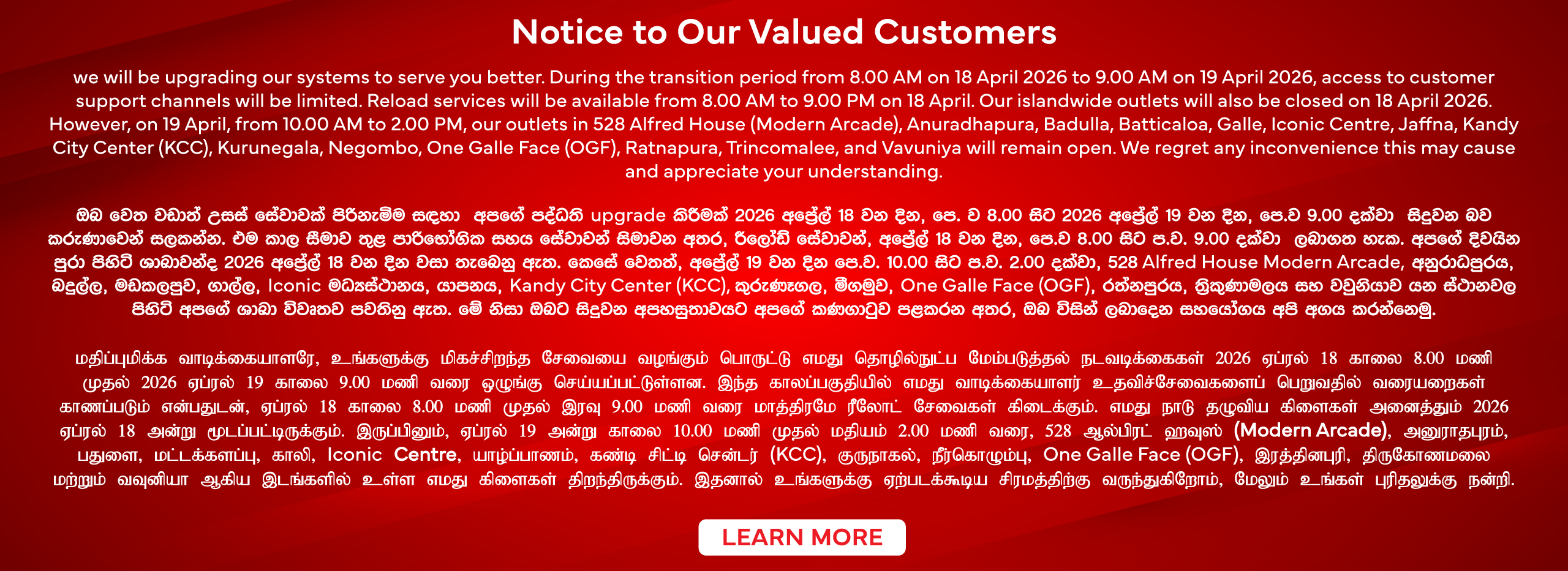 Unlimited access to a great music experience on your mobile. Listen to your favourite English, Hindi, Sinhala and Tamil music on the go.